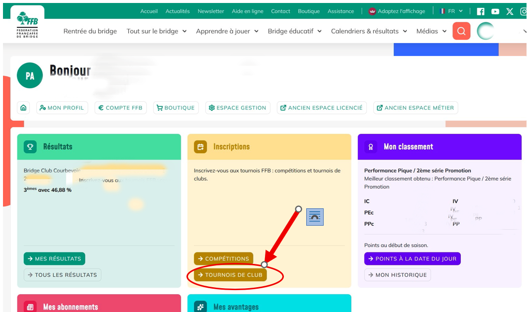 Suite au vote unanime de l'Assemblée générale, il a été décidé que l'inscription aux tournois (simultanés comme tournois de régularité) serait obligatoire à compter du mois de novembre, comme c'est le cas dans de nombreux clubs voisins. Cette inscription devra se faire dans l'espace personnel que chacun possède sur le site FFB.